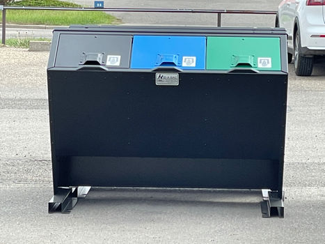 Discover the Hid-A-Bag waste and recycling bins, meticulously crafted from galvanneal steel. This special material not only offers an enhanced resistance to scratches and damage throughout its manufacturing but also ensures an enduring lifespan. Complemented by corrosion-defiant stainless steel hinges and a resilient powder-coat finish, this container promises unparalleled durability and a sleek, dense appearance that outperforms traditional liquid paint. For those seeking additional visual appeal, our optional finishes boast recycled poly wood siding and vibrant vinyl graphic wraps.